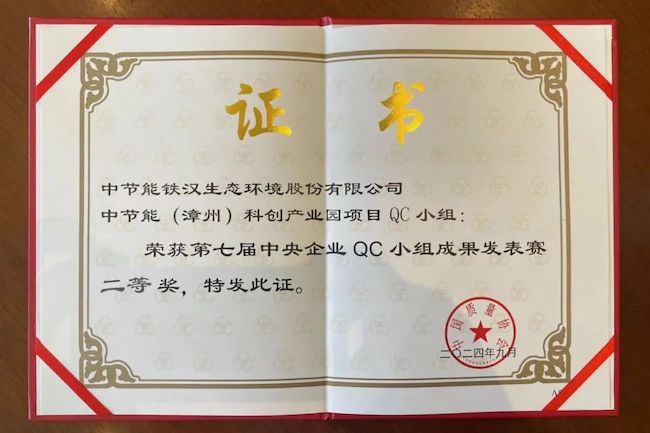 中節(jié)能鐵漢榮獲第七屆中央企業(yè)QC小組成果發(fā)表賽二等獎(jiǎng)